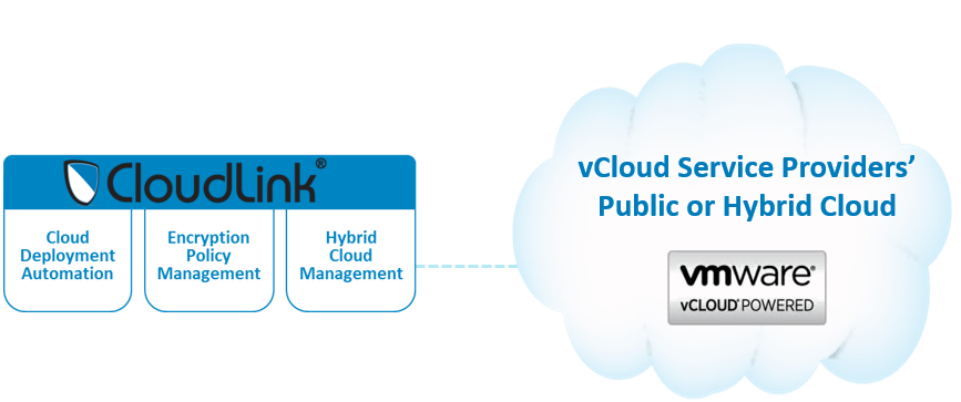 - Hybrid cloud model with both VMware vSphere and vCloud Director based private cloud and vCloud powered public cloud services offered by these service providers. The CloudLink data security solution can be deployed in a hybrid fashion and managed via a common CloudLink Center on premise, which can be integrated enterprise key management systems